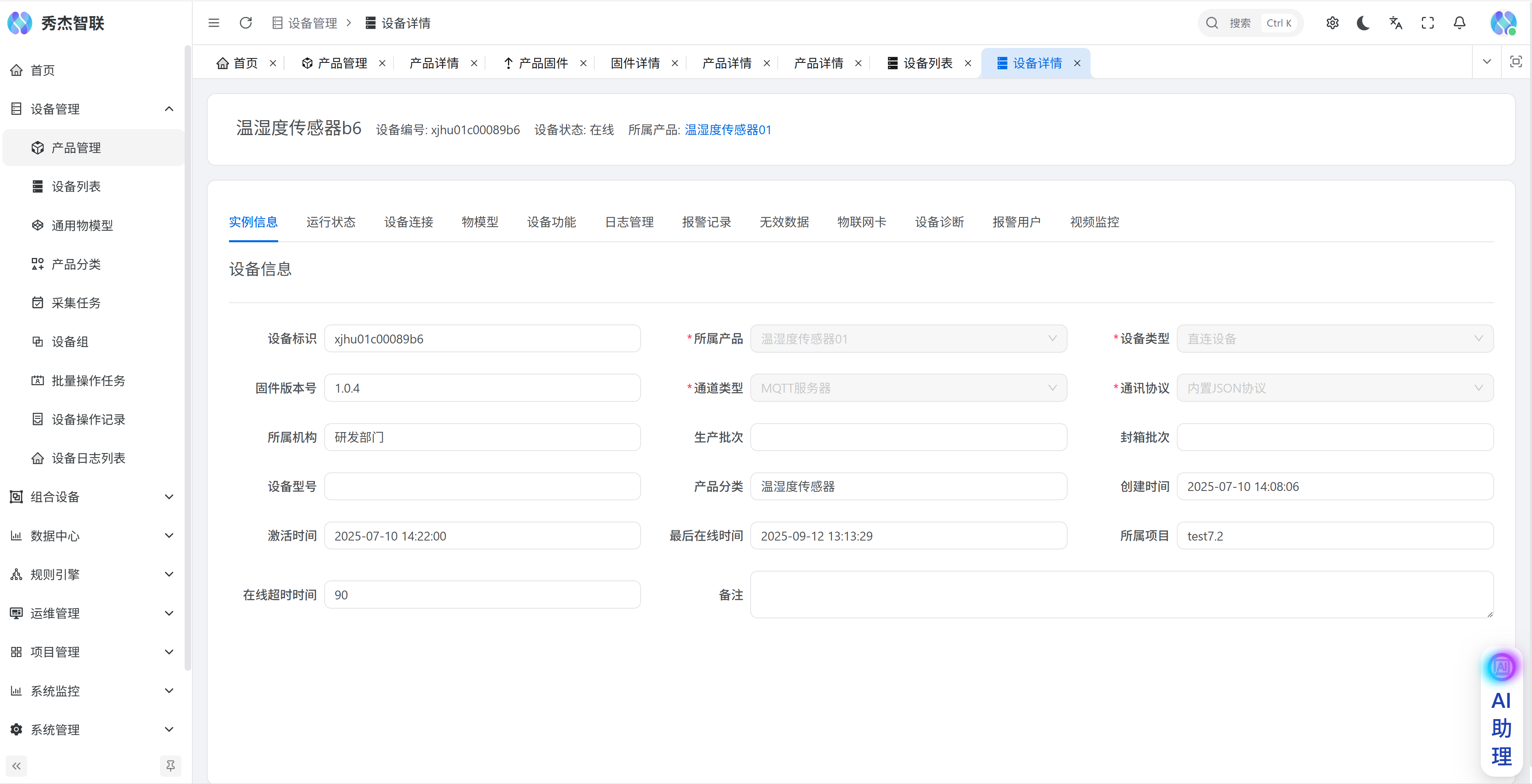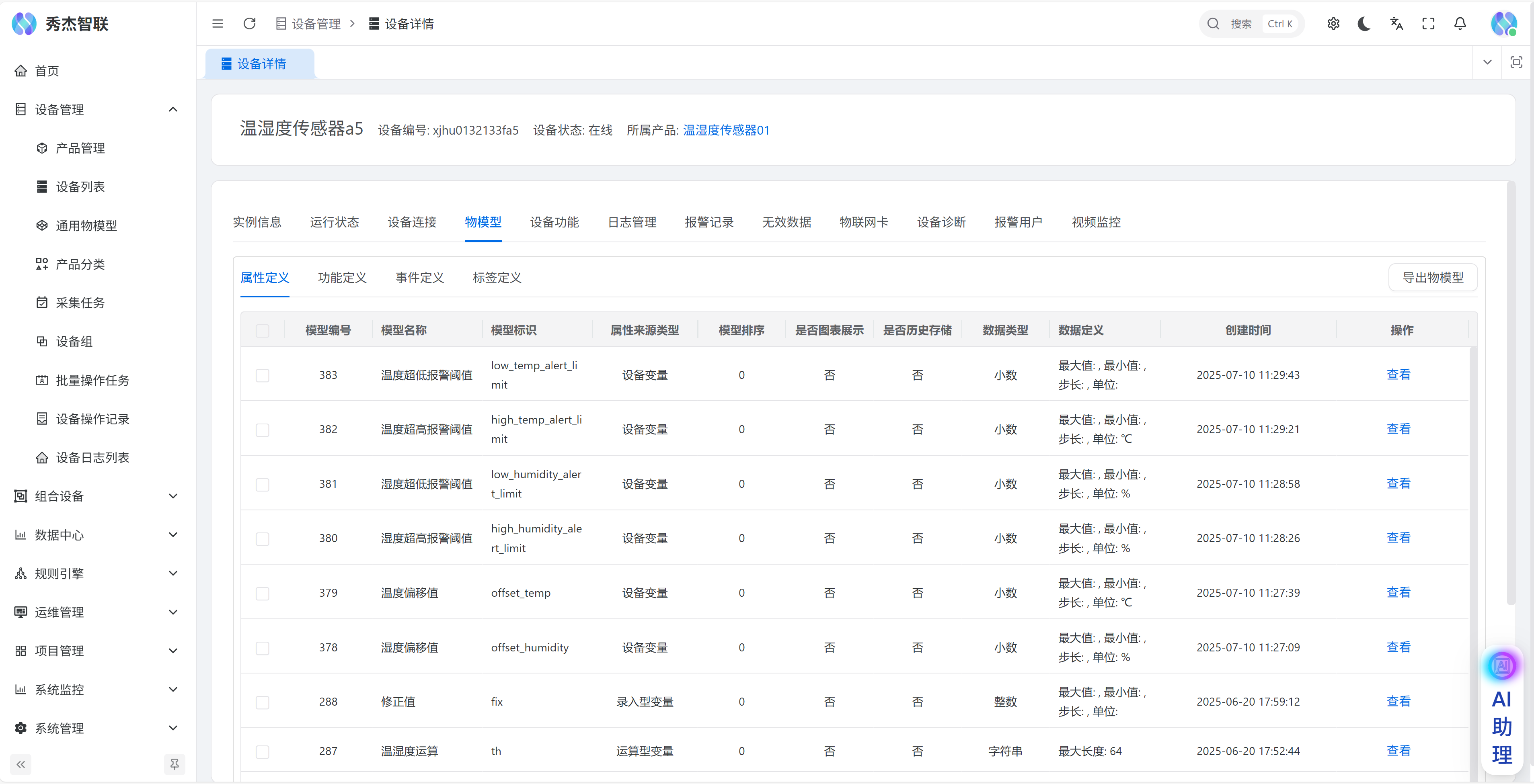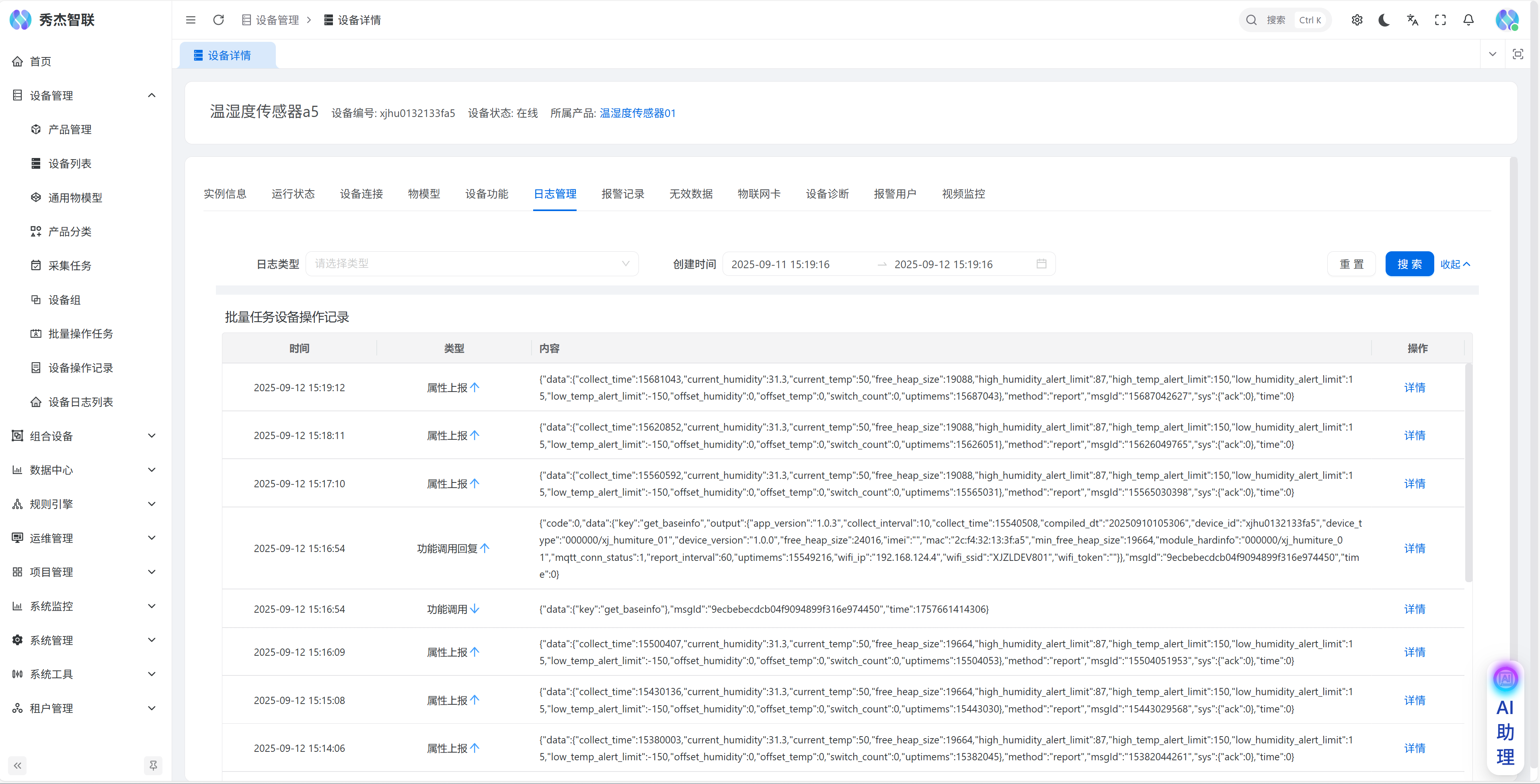 设备详情--日志管理,查看设备属性上报,功能调用,事件上报等日志记录