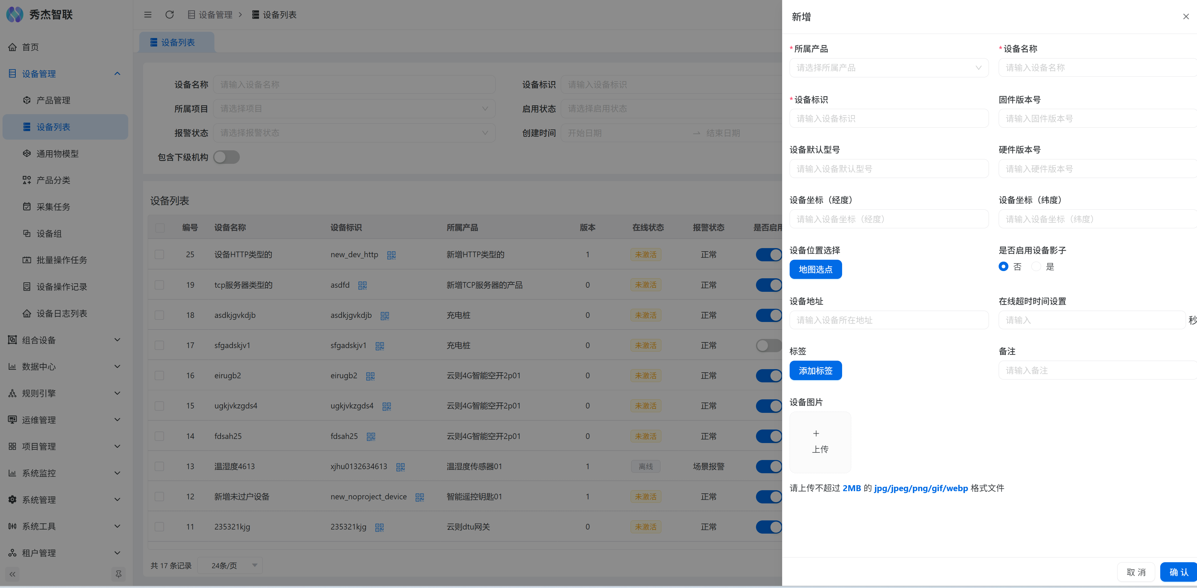 | 设备图片 | 可自行上传设备图片,若所选产品有图片会默认回填产品图片,可修改 |