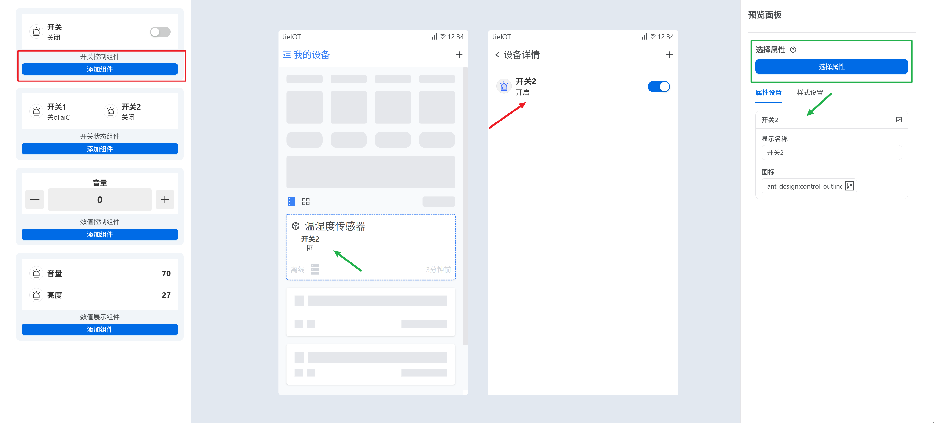 右侧即为组件配置,选择组件的属性,图标,以及样式管理等